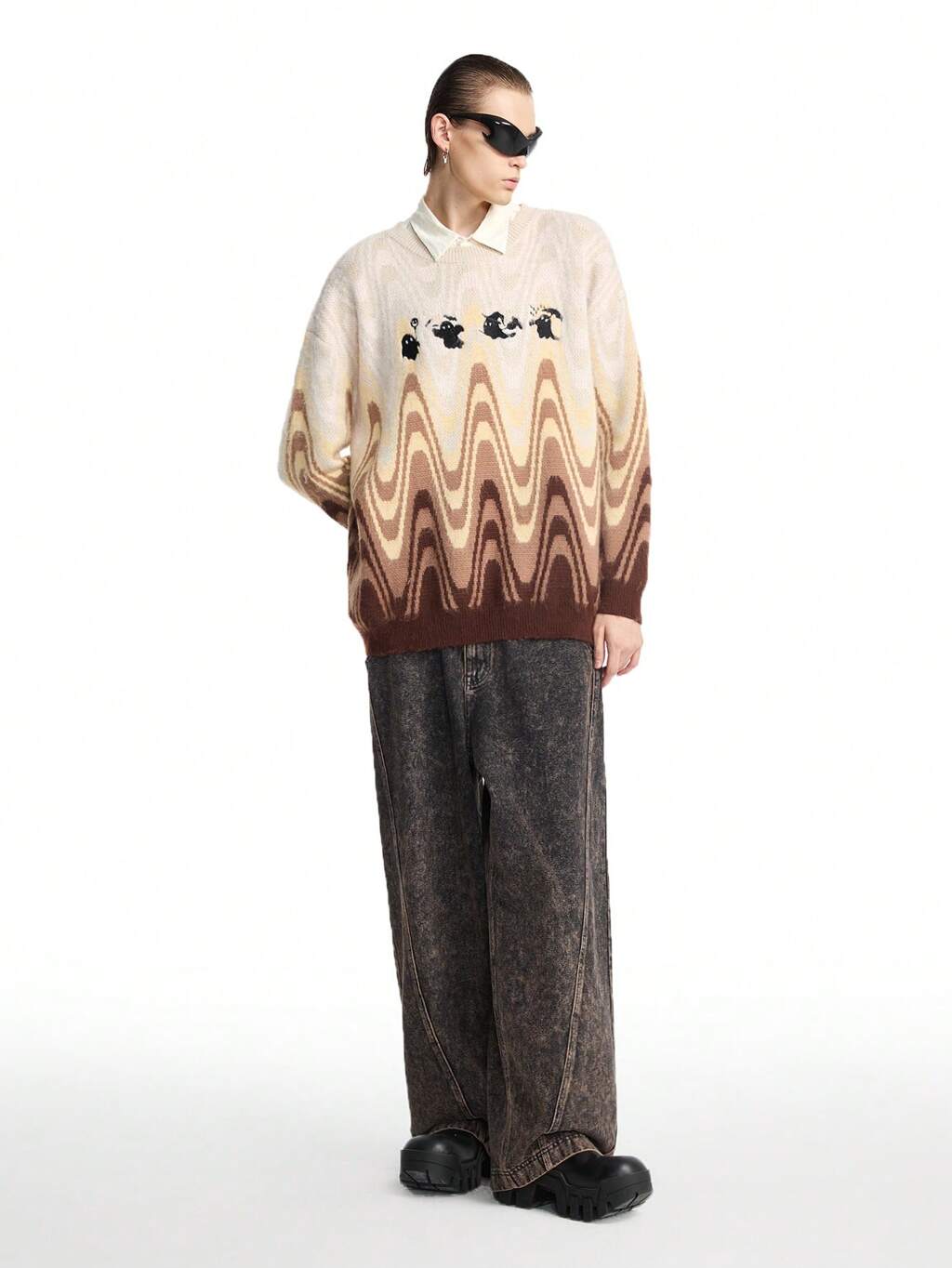 1pc Men's Ombre Crewneck Embroidered Sweater, Suitable For Autumn & Winter Seasons, Halloween