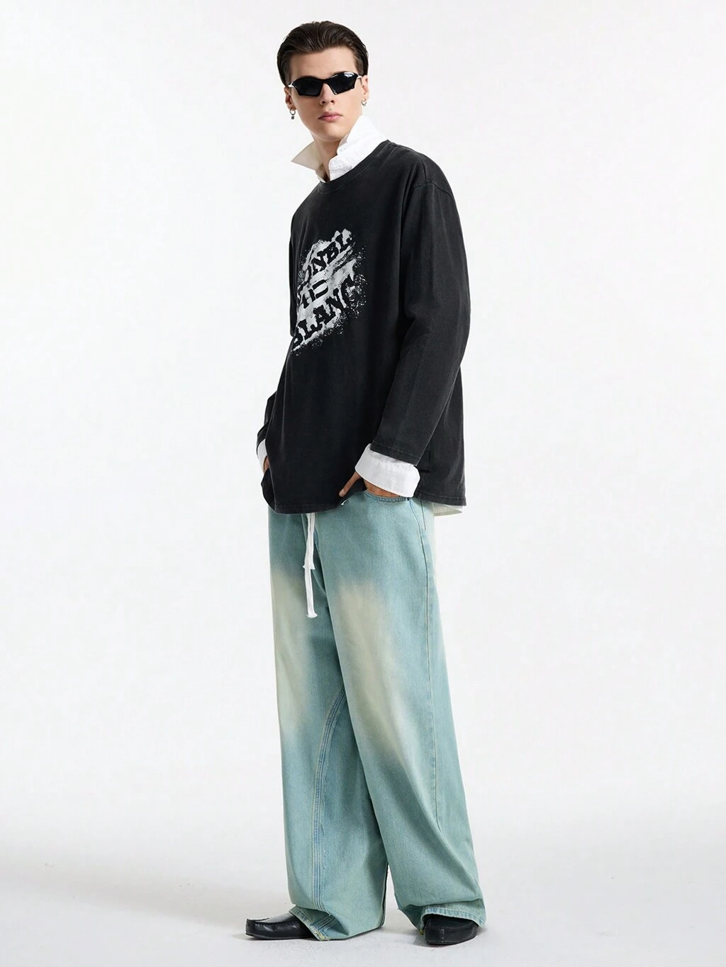Men's Light Blue Washed Faded Baggy Jeans