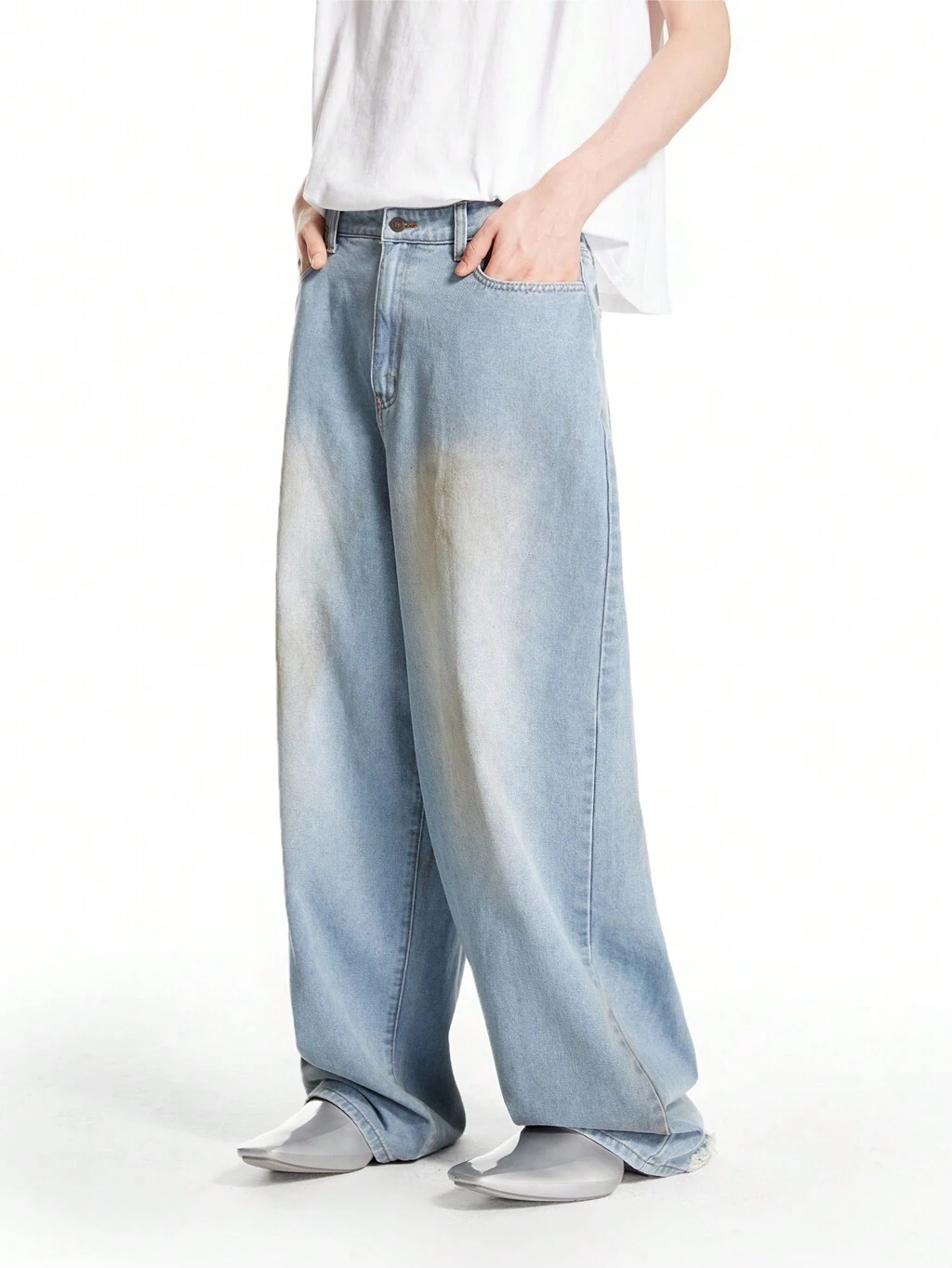 Casual Men Distressed Wide Leg Loose Denim Jeans