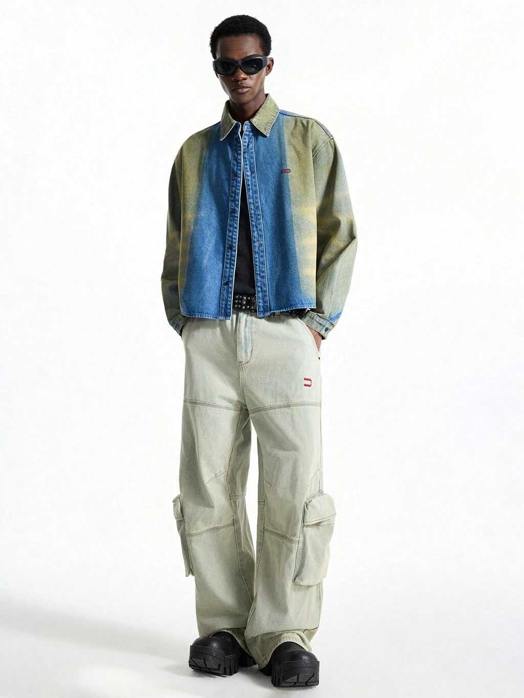 Men's Loose Oversized Drop Shoulder Street Multi-Pocket Woven Denim Jacket