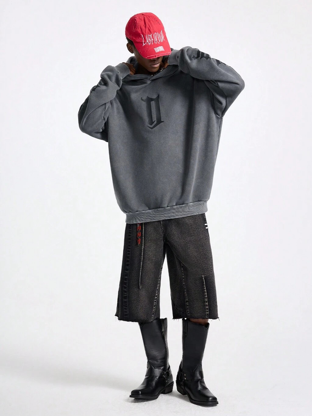 Designer Hybrid Washed Button Sleeve Oversized Hoodie