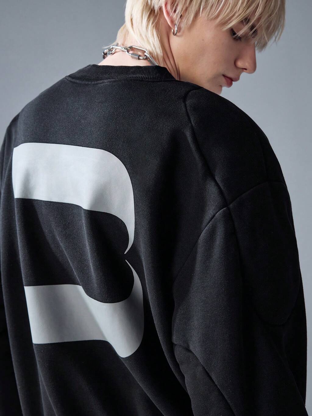 Men's Loose Fit Gradient Black Pullover Crew Neck Sweatshirt With Graphic Print, Long Sleeve, For Fall Winter