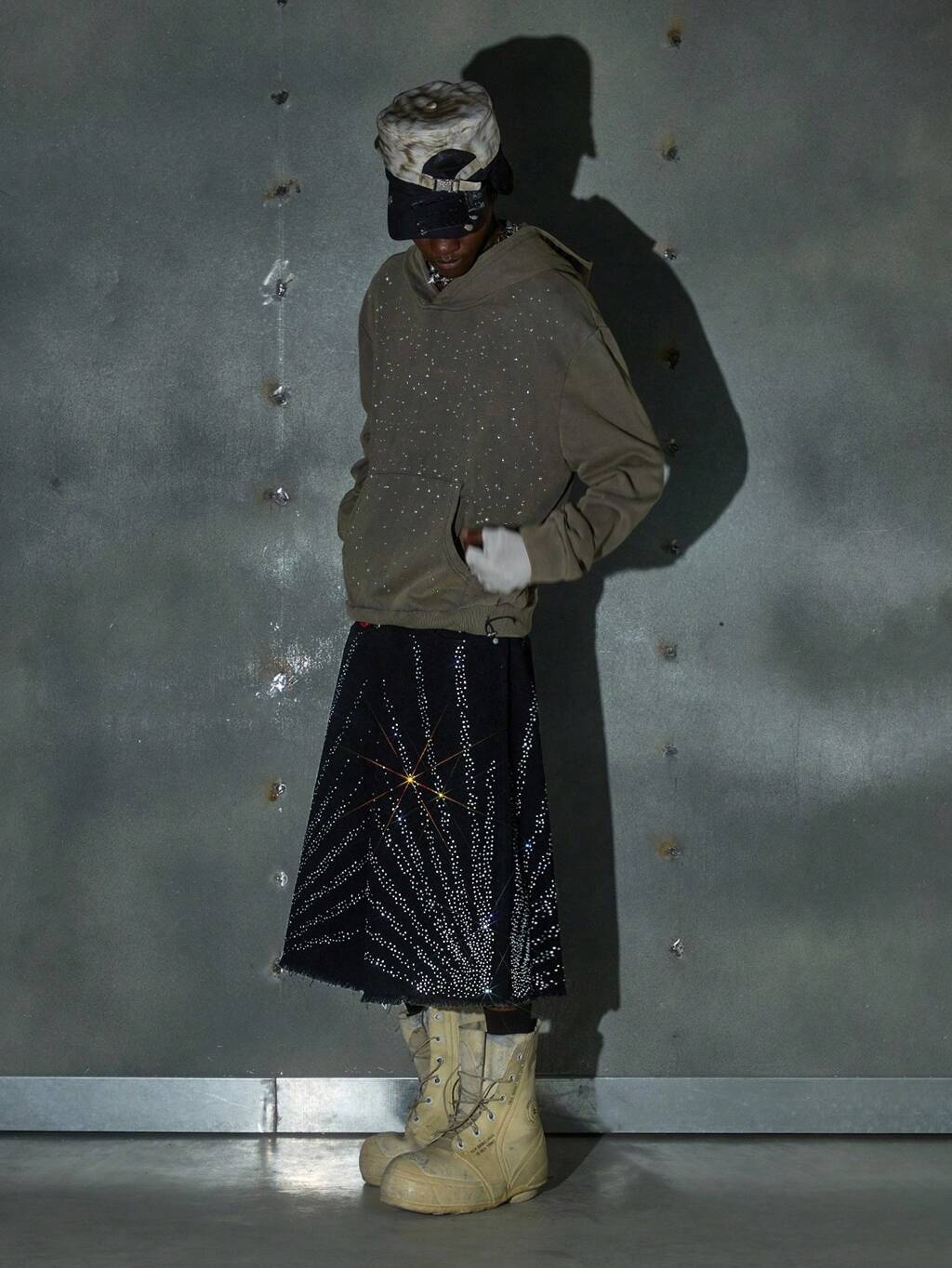 Men's Street Style Knitted Salt Distressed Rhinestones Long Sleeve Hoodie, For Fall Winter