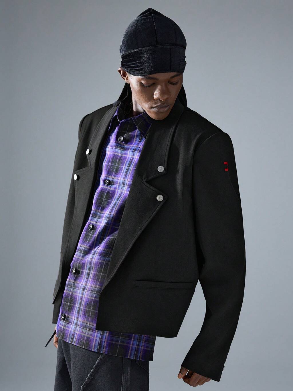 Men's Street Fashion Long Sleeve Loose Fit Woven Black Blazer, For Fall Winter