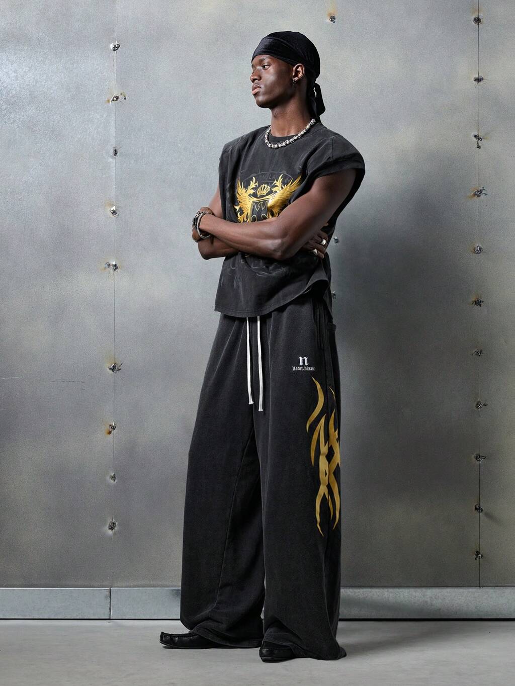 Men's Street Fashion Gold Printed Sleeveless Knitted Tank Top, Suitable For Summer