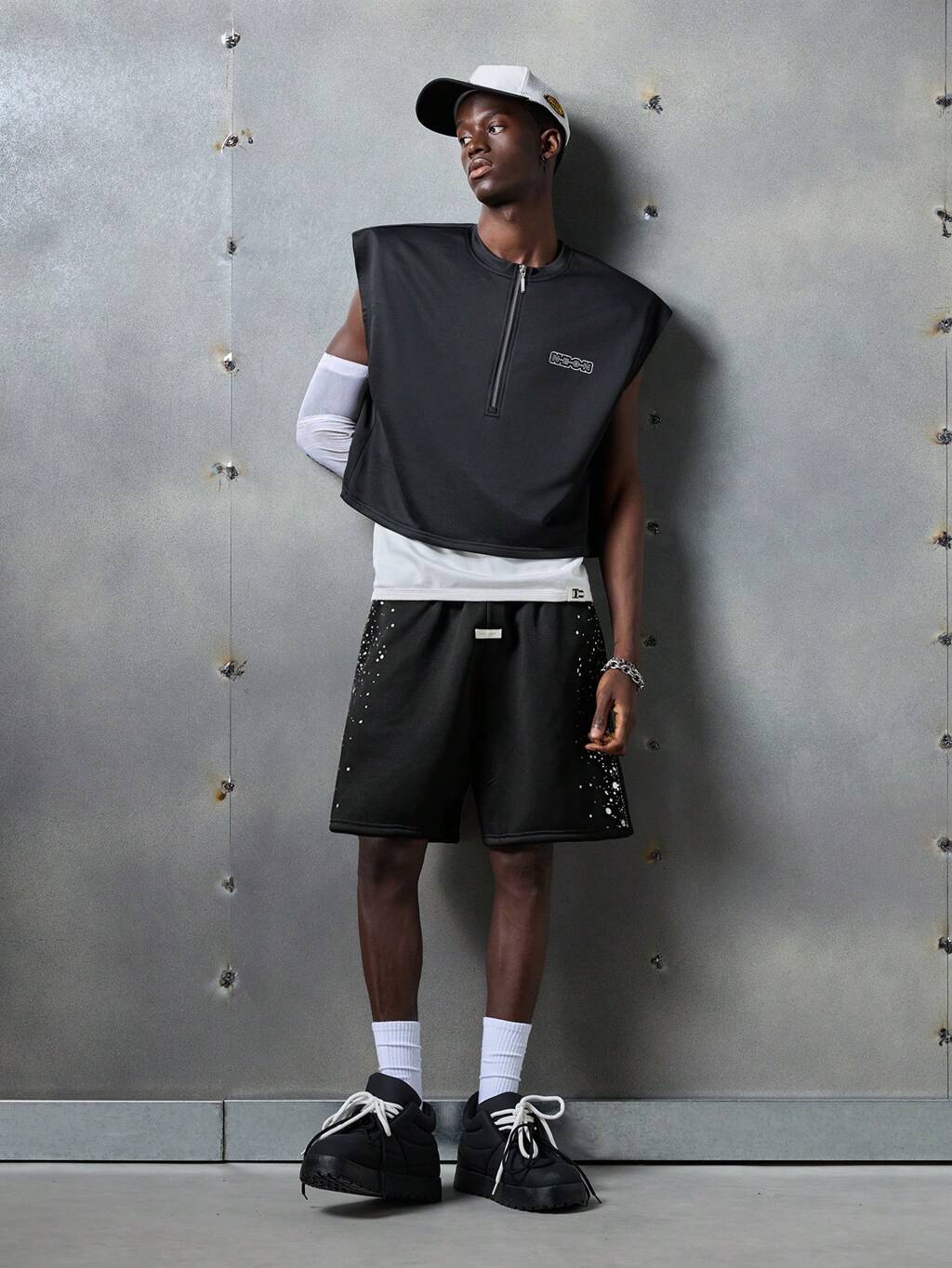 Men's Street Fashion Polka Dot Sequin Knit Elastic Waist Shorts, Suitable For Summer, School, Streetwear-Ready