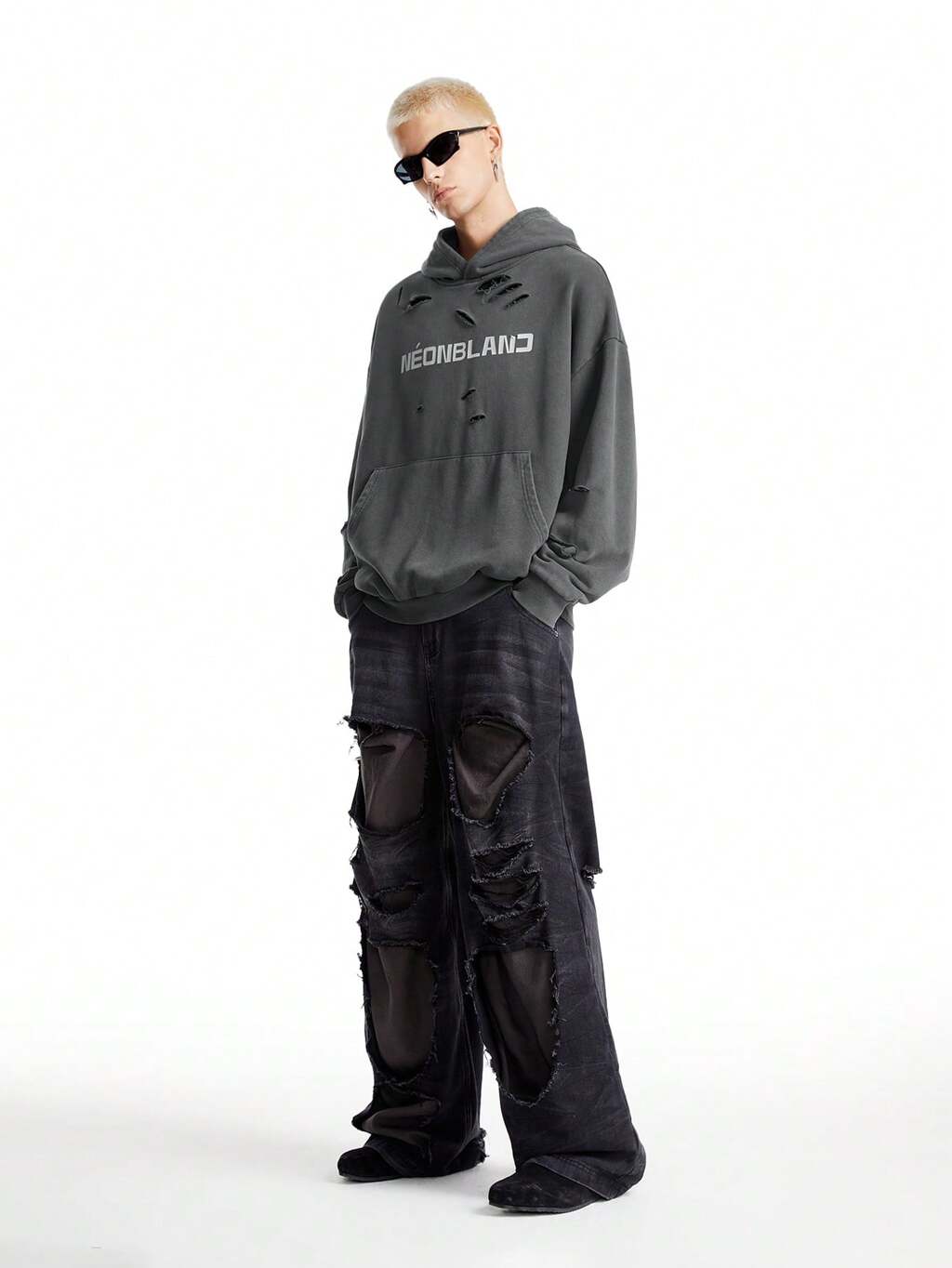 Men's Dark Grey Ripped Loose Flare Denim Jeans